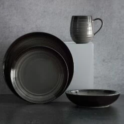 Wholesale 💯 Mikasa® Swirl Black Coupe with Graphite Ombre Accent 4 Piece Place Setting 😍