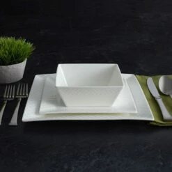 Flash Sale ❤️ Mikasa® Trellis White Square 16 Piece Dinnerware Set, Service for 4 😉