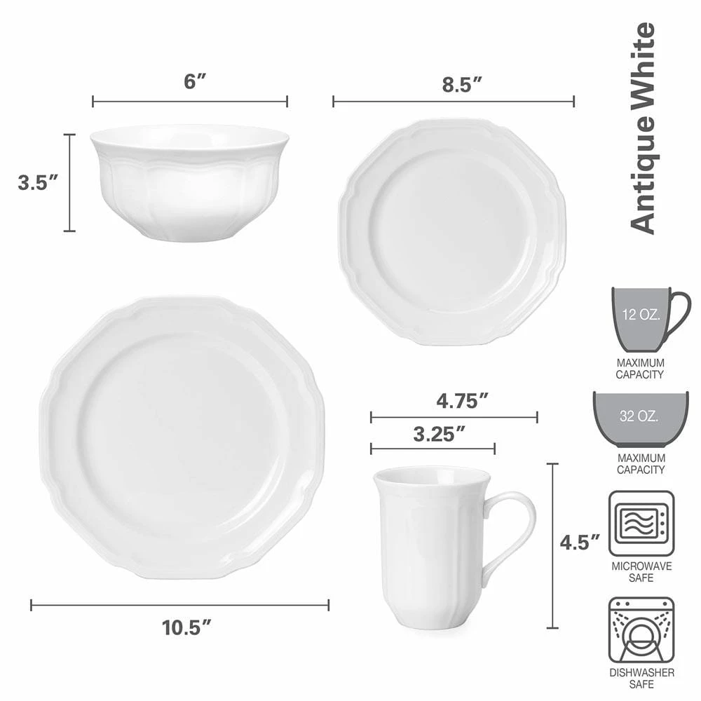 Budget 🔥 Mikasa® Antique White 16 Piece Dinnerware Set, Service for 4 🛒