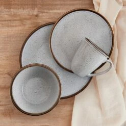 • Dinnerware Set for 4: This 16 piece dinnerware set includes (4) each of: 10-1/2 inch dinner plate, 8-1/2 inch salad plate, 6 inch diameter (25 ounce) soup cereal bowl and 13 ounce mug
