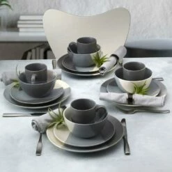 Cheap 🔥 Gourmet Basics® Brandi Gray 16 Piece Dinnerware Set, Service for 4 🎁