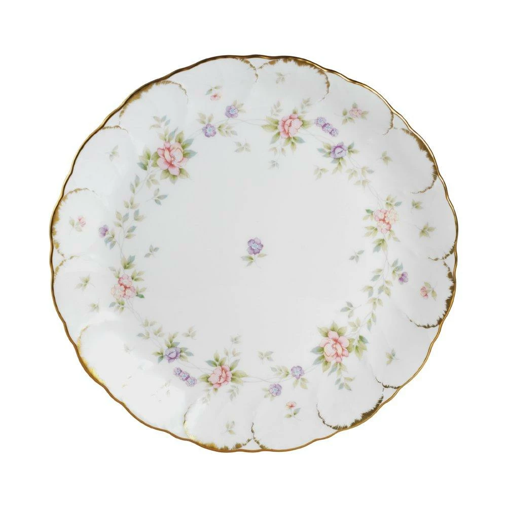 Brought back by popular demand! Endearment gives a classic floral pattern a touch of contemporary flair while retaining the traditional elements that make the style so enduring. A garland of delicate flowers in a soft palette frame a single center flower, and the scalloped shapes of each piece in this dinnerware collection are accented by gentle gold highlights. Constructed of Bone China. Hand wash only. This dinner plate is ideal for your main meal, but also makes a great small serving platter. Dinner plate measures 10-1/2 inch diameter.