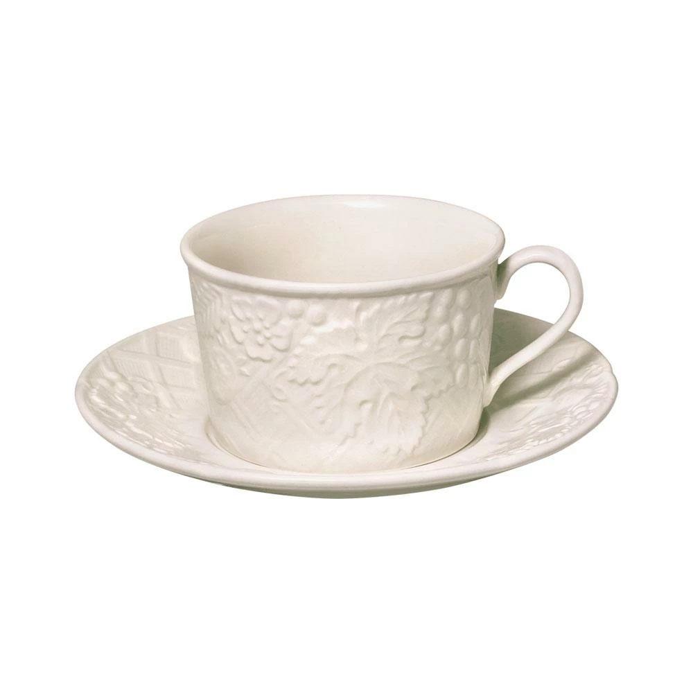 The essence of nature is transformed into a sophisticated setting with the simplicity and style of this charming all-white embossed fruit design. Whether formal and casual, English Countryside adds a touch of class to your dining pleasure. One of our best selling patterns, there is a full array of accessories for a beautiful and complete casual dining statement. Crafted of stoneware. Microwave and dishwasher safe. Includes a 9 ounce Tea Cup and 6-1/2 inch diameter Saucer.