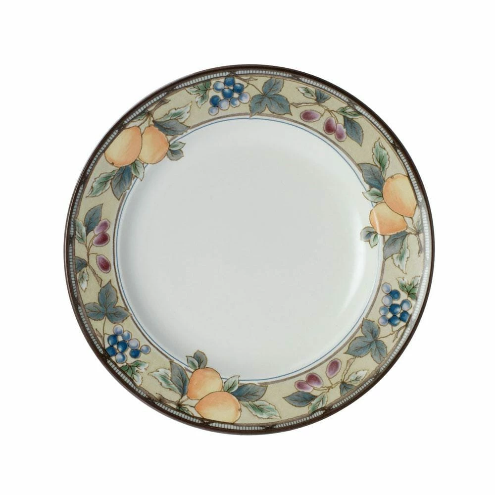 Colorful fruits and leaves enliven the Garden Harvest pattern. This longtime favorite is perfect for everyday use and has a wide array of accessories to create a complete casual dining statement. This pattern coordinates perfectly with casual stemware and flatware. Crafted of stoneware. Microwave and dishwasher safe. Bread and butter plate measures 6-3/4 inch diameter.