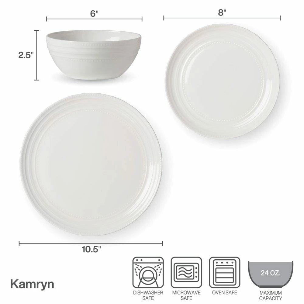 - Service for 4: This 12 piece dinnerware set includes (4) each of: 10-1/2 inch dinner plate, 8 inch salad plate, and 6 inch diameter (24 ounce) all-purpose bowl