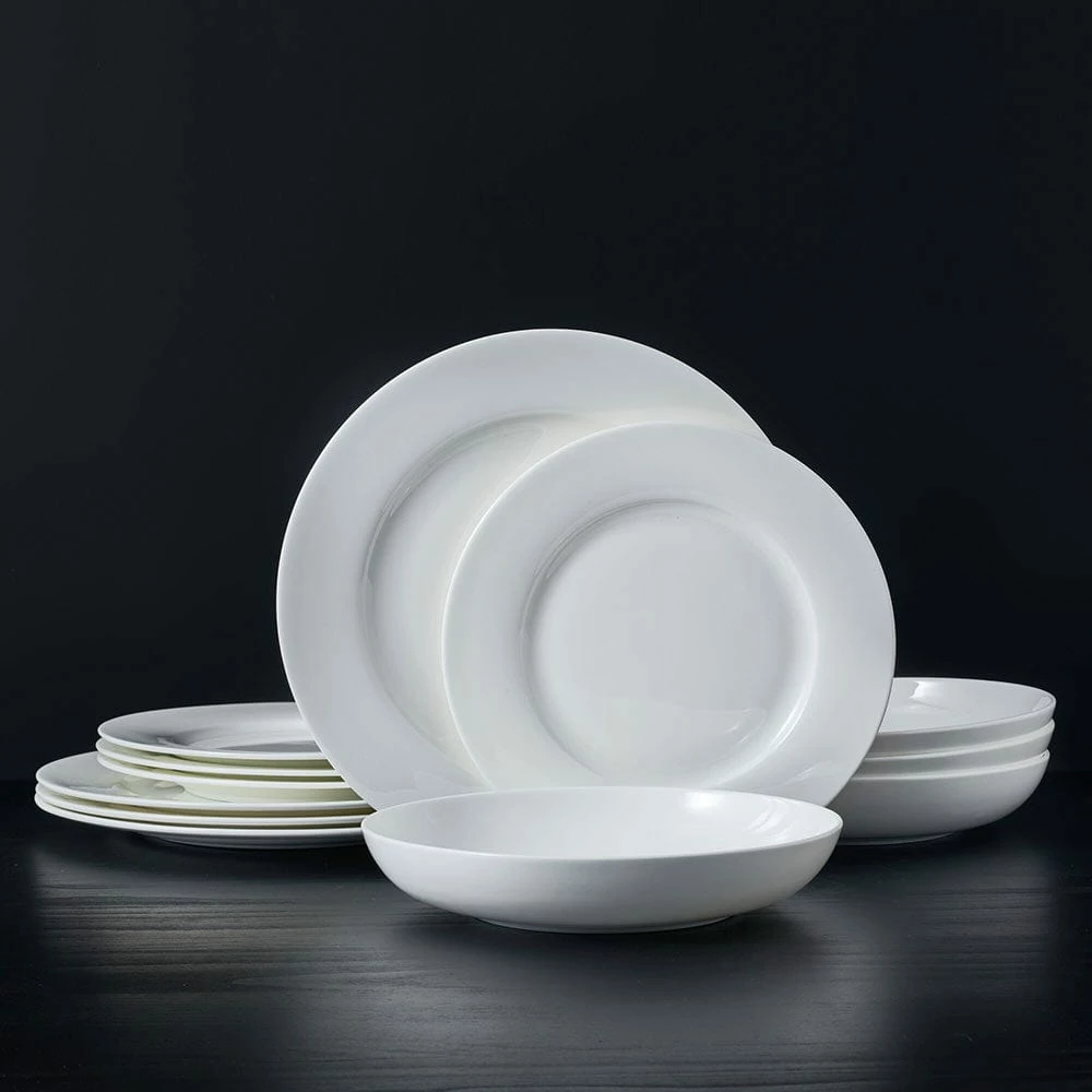 • Dinnerware Set for 4: This 12 piece dinnerware set includes (4) each of: 11 inch dinner plate, 9 inch salad plate, and 9 inch diameter x 1-3/4 inch high (34 ounce) pasta bowl