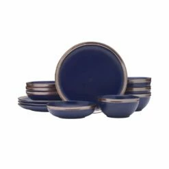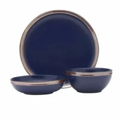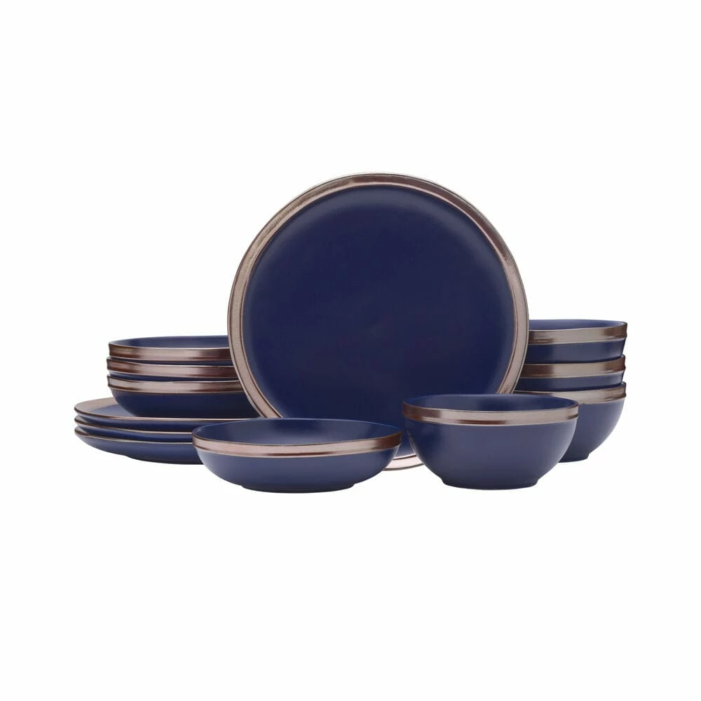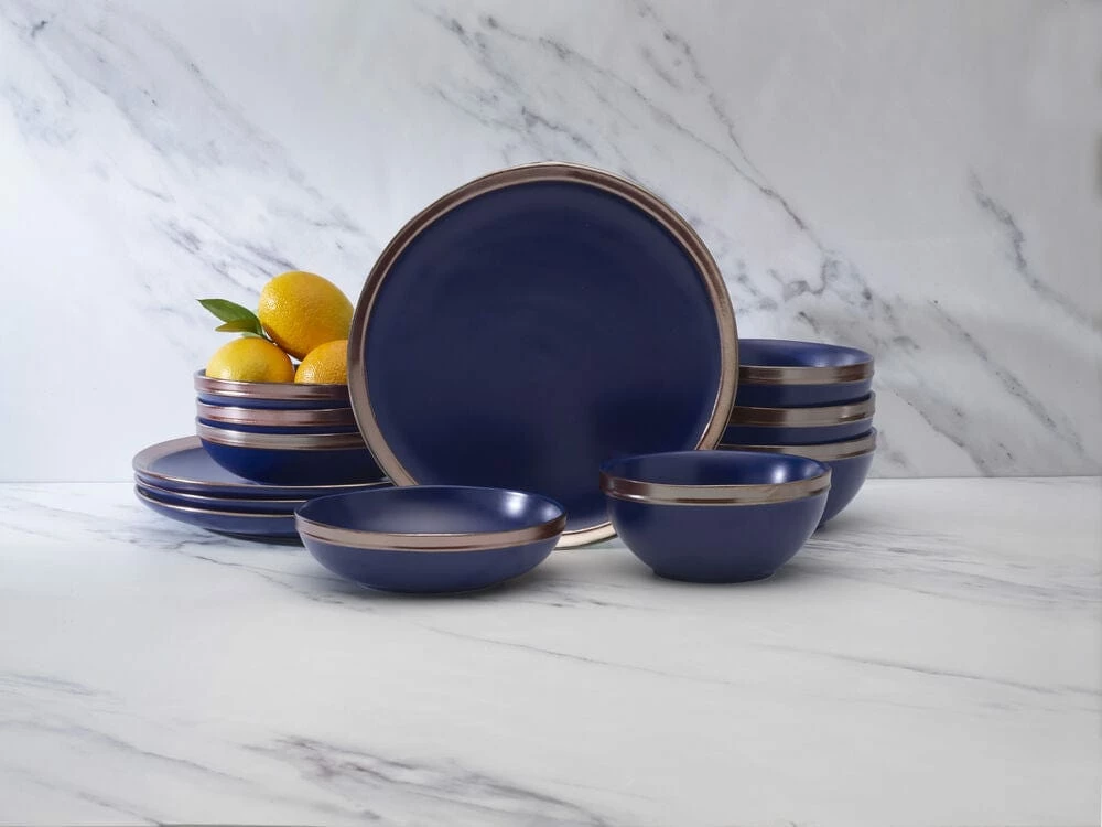 This Miller Blue Dinnerware Set features a blue reactive glaze, on subtle organic shapes with rose gold banding, and will brighten your everyday table. Due to the nature and hand-crafted qualities of reactive glaze, no two pieces are exactly alike and will exhibit unique variations in color and pattern. Product may slightly differ from image shown.