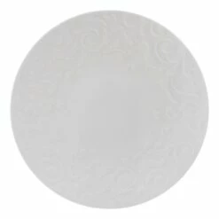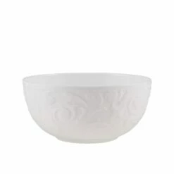 Mikasa Sadie dinnerware features an embossed scroll design around the rims, adding a flourish of interest to your place settings, and will complement any flatware of stemware. Crafted of bone china. 16 piece dinnerware set, service for four, includes (4) each: 10-3/4 inch dinner plate, 8-1/4 inch salad plate, 6 inch soup cereal bowl and 14 ounce mug. Microwave, dishwasher and oven safe.