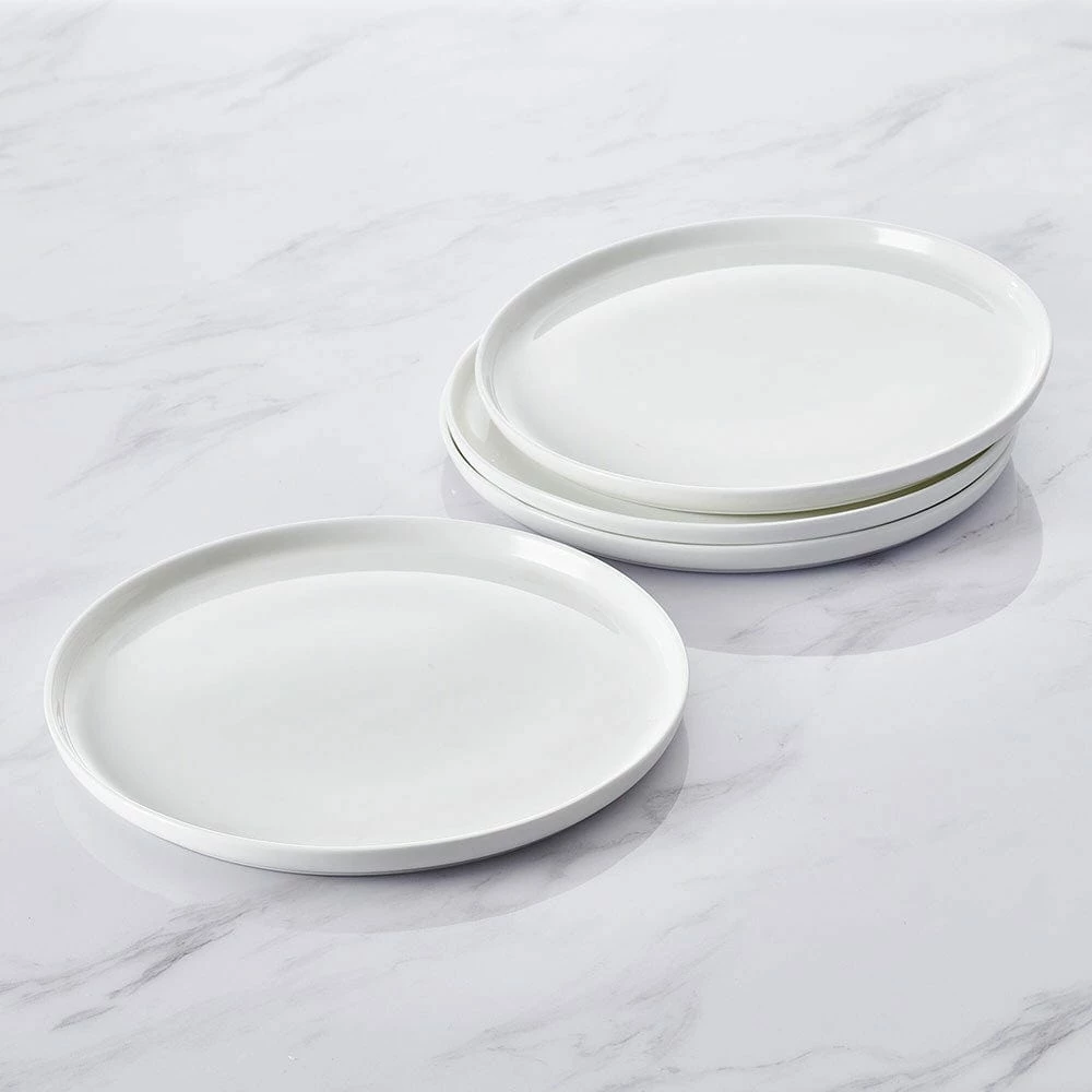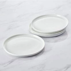 This Samantha Set of 4 Dinner Plates feature a stylish design in crisp white that will compliment and add a distinctly modern touch to your table.