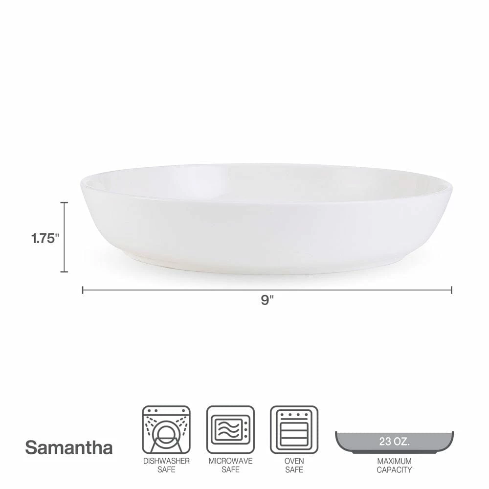 This Samantha Set of 4 Pasta Bowls feature a low, wide design, in crisp white that will compliment and add a distinctly modern touch to your table.