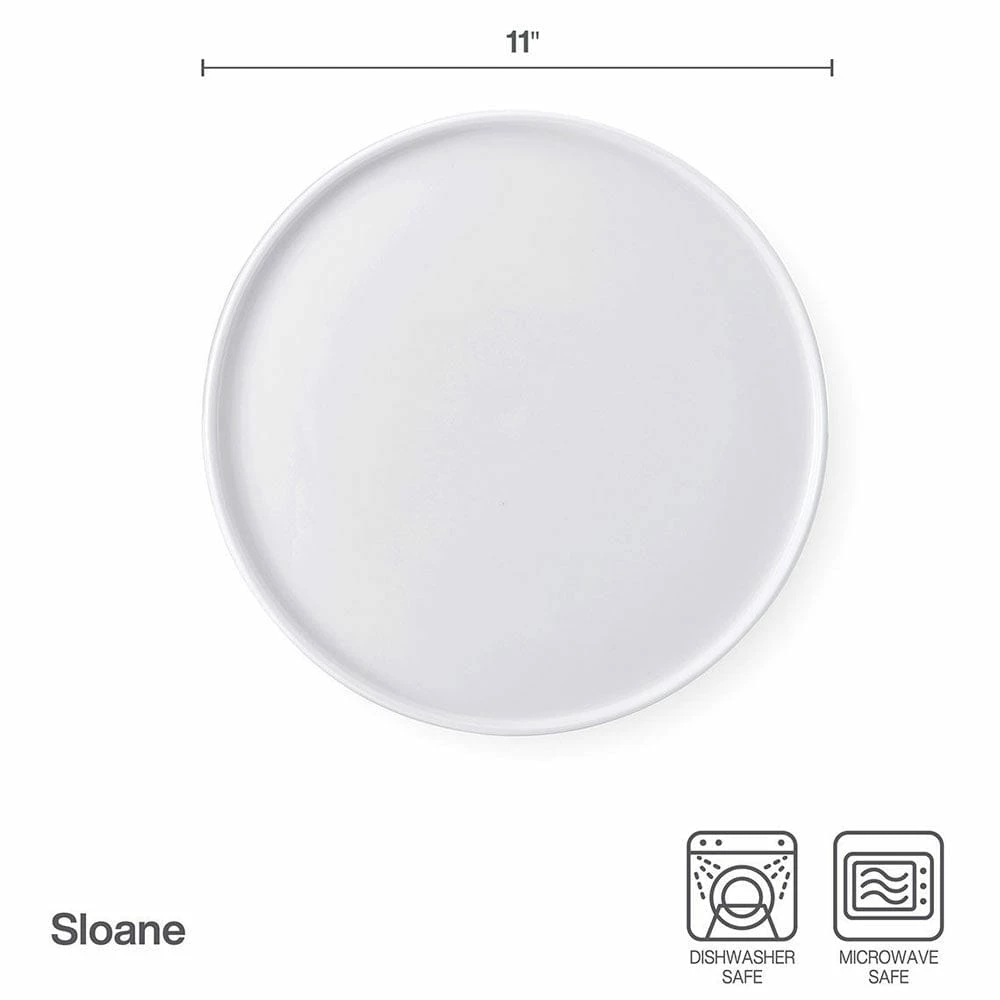 This Sloane Set of 4 Dinner Plates feature a crisp white body that will highlight your favorite flatware and stemware, give your table a contemporary feel and is perfect for everyday dining.