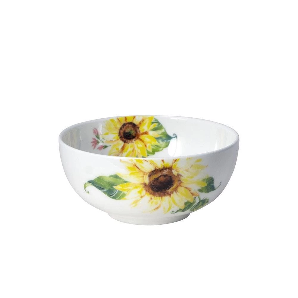 This Mikasa Sunflower Set of 4 Fruit Bowls feature a sunflower design in bold hues of pink, blue, yellow, and green, adding charm and a splash of color to your casual table setting.
