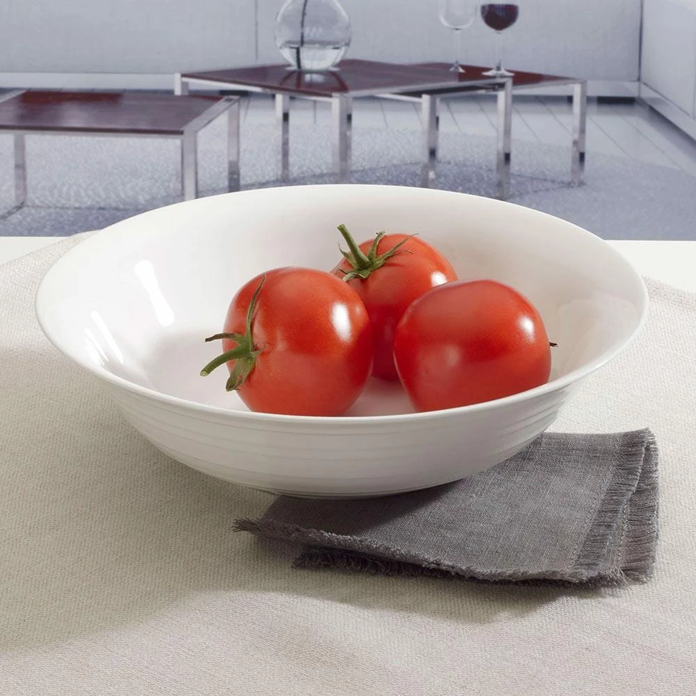 With a clean white surface and a striated line design around the rims, the simple elegance of Swirl Bone dinnerware will enhance the look of any stemware or flatware pattern. S Crafted of durable, chip resistant bone china. Microwave and dishwasher safe. Vegetable bowl measures 10 inch diameter x 2-1/2 inch high.