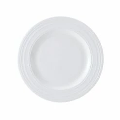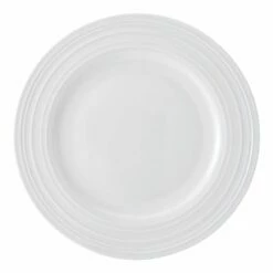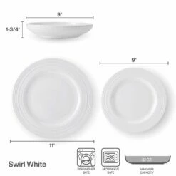 This Mikasa Swirl Bone Dinnerware Set features a clean white surface and striated line design around the rim, it’s stylish, understated, and a versatile addition for special occasions or casual dining.