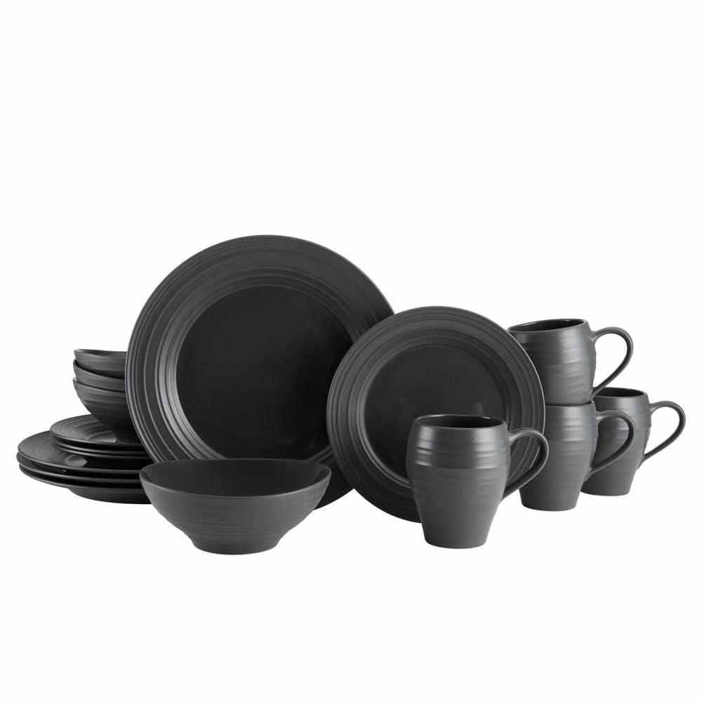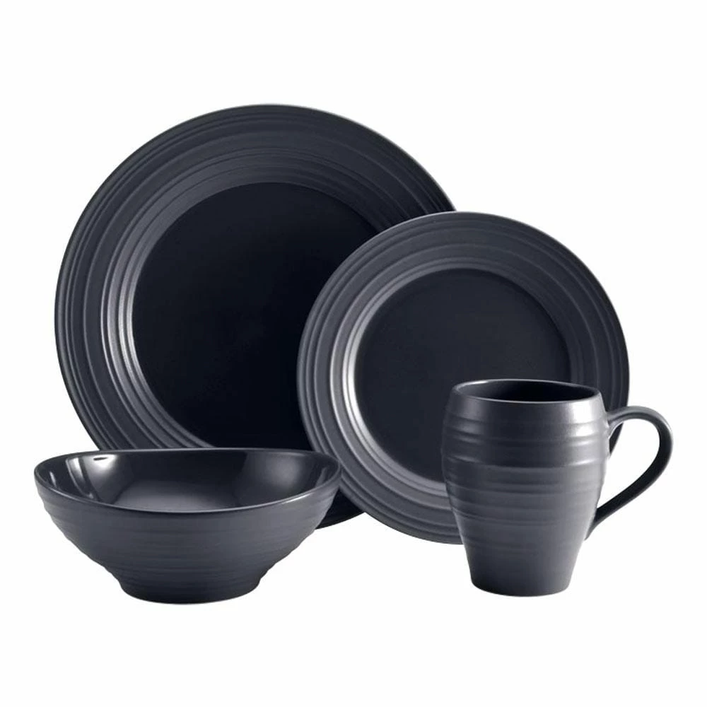 Deals 🎁 Mikasa® Swirl Graphite 16 Piece Dinnerware Set, Service for 4 ❤️