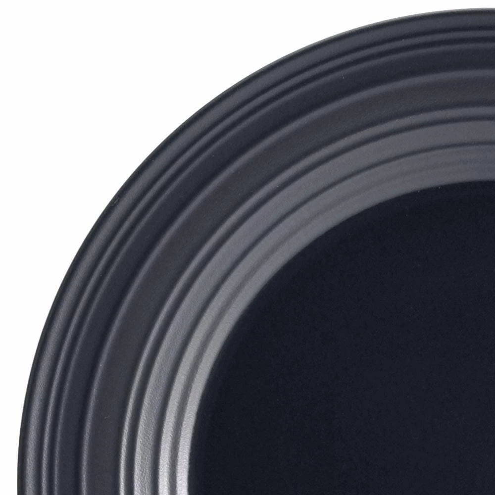 Swirl Graphite combines an organic shape, embossed texture, and dual, matte and shiny finish, for a truly modern look. The graphite color will add a bold touch, and a striking statement with its versatile style. Crafted of ironstone with a pin-firing technique which allows the entire bottom of the plate to be glazed, including the base. This process significantly reduces water absorption and increases chip resistance. 16 piece dinnerware set, service for four, includes (4) each: 11-1/4 inch dinner plate, 8-1/2 inch salad plate, 6-3/4 inch (24 ounce) soup cereal bowl and 18 ounce mug. Microwave and dishwasher safe.