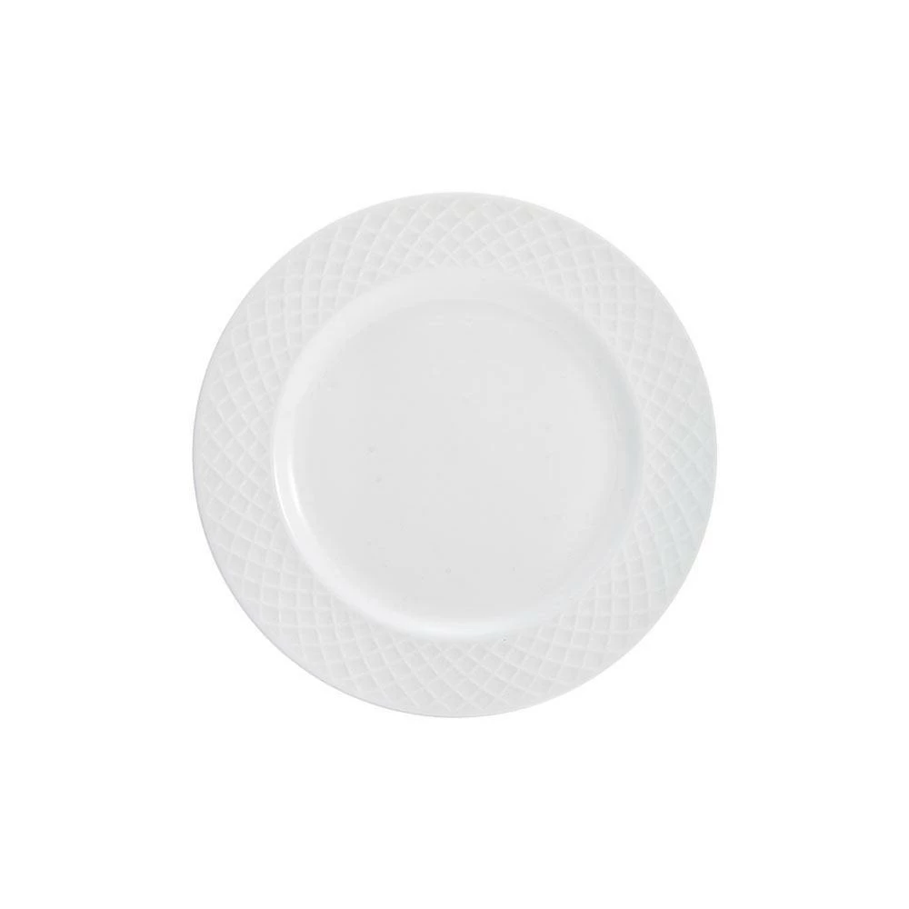 This Mikasa Trellis White Set of 4 Appetizer Plates feature a contemporary, criss-cross line design framing each piece, creating eye-catching depth and movement on your tabletop. This casual and stylish set is perfect for everyday use.